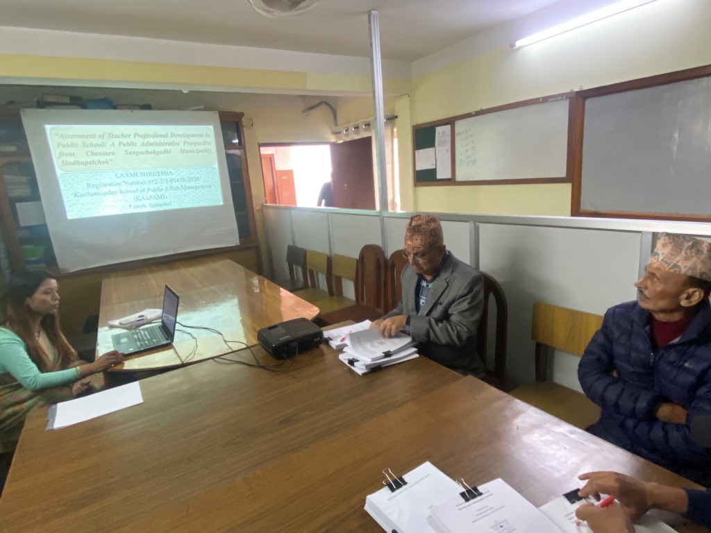 आज मिती २०८२-१२-१७ गते प्रा.डा. पुरूषोत्तम शमा॔ज्यूको अध्यक्षतामा बाह्य बिज्ञ पूवांञ्चल विश्व बिधालयका पूव॔ उपकुलपति प्रा.डा. यादव राज कोईरालाज्यू आन्तरिक बिज्ञहरु प्रा. रत्नराज निरौलाज्यू, प्रा. डा. राजीव बिक्रम राणाज्यू , प्रा डा रामबाबु ढकाल, डा महेन्द्र प्रसाद श्रेष्ठ, डा लक्ष्मीकान्त पौडेल र श्री चेतना थापाज्यूबाट बिधाथी॔हरु बिदुर अधिकारी, लक्ष्मी श्रेष्ठ, भक्ती प्रसाद चालिसे र महेश पन्तको शोधपत्रको मूल्याकन सम्पन्न भयो । सबै बिज्ञ समुह प्रति हादि॔क आभार व्यक्त गदै॔ बिधाथी॔हरुलाई हादि॔क बधाई व्यक्त गद॔छौ ।